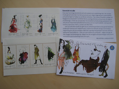 Ruotsin postilaitos on julkaissut postimerkkisarjan, jossa kuvituksena on ruotsalaisen muotisuunnittelun huippuja tyylikkäinä muotipiirroksina. 8 merkin kansion sisäsivulla muotitoimittaja Marie Birde hehkuttaa, että “ruotsalaiset tunnetaan maailmalla modernina ja muodikkaana kansana”…