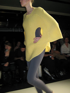 ———————————- Keltainen neulepaita tuo elävästi mieleen loistoaikojen Pierre Gardinin modernina tulkintana – design Kristina Lundsjö. Cool pikkumusta punotusta nahkasta ja jerseystä – design Anna Hjerling.