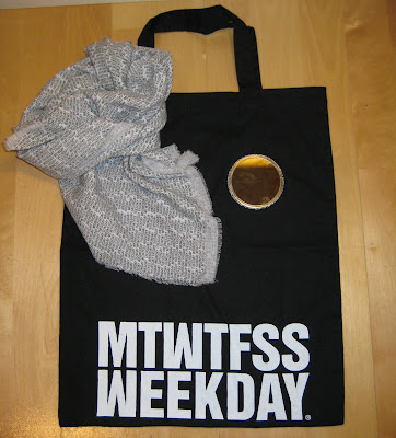 – Musta puuvillakankainen Weekday-kassi, loistava monitoimikoko!