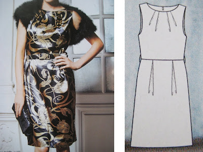 Ostin eilen uuden Burdan, vaikka onkin tosi raivostuttavaa, että tunkevat lehden kelmuihin niin, että etukäteen ei saa mitään hajua lehdessä olevista kaavoista. No ainakin tuo kuvan mekko tuntui heti jotenkin kivalta ja hyvin mahdolliselta kaasomekkovaihtoehdolta. Tykkään erityisesti yläosan laskostellusta pääntiestä. Lehdessä on mekoon myös 3/4 hihojen kaavat, joista saisi helposti väsättyä pienet hihat. Mahdolliset hihat voisivat mainiosti olla tuon kuvan karvaboleron mittaiset… Hameosa on jotenkin särmätön, mutta toisaalta liiallinen tulppaanihärpäke voisi olla totaalisesti too much.